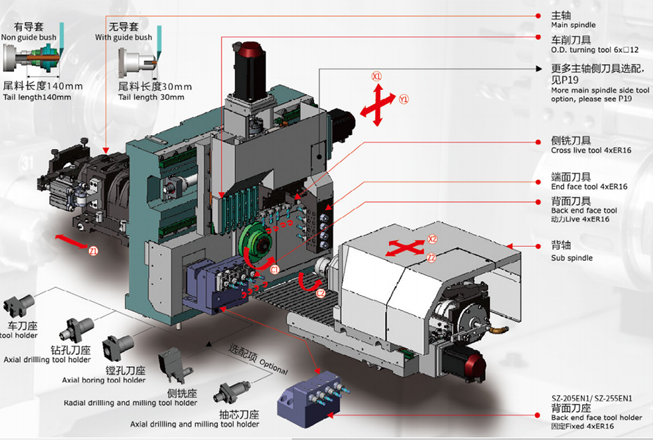 | 型號(hào) Model | 碩方SZ-255E1 5軸,雙主軸走心機(jī) 5 axis, dual spindle | 碩方SZ-255E2 5軸,雙主軸走心機(jī) 5 axis, dual spindle | |||